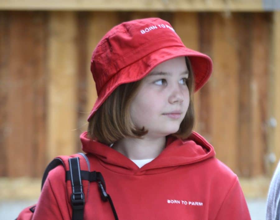 Bob enfant rouge « Born to farm » dans un rouge légèrement délavé.